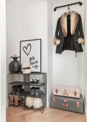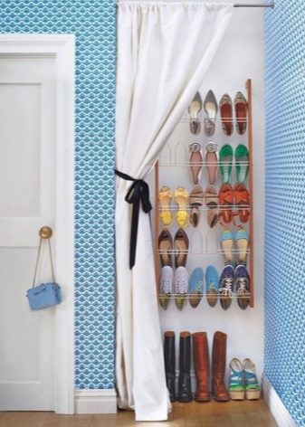 - خزانة الاحذية. هذا حامل أحذية مفتوح يتم ارتداؤه كل يوم. يمكن استخدامه كمجفف إذا تم تركيبه على شرفة أو لوجيا.