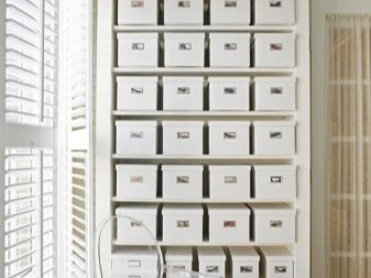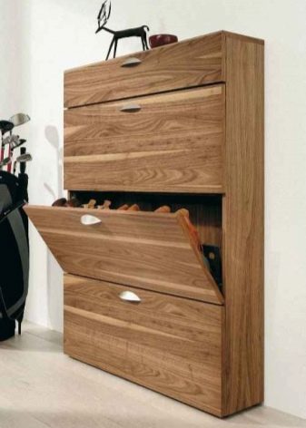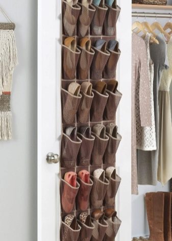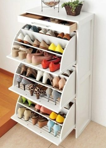 - منظم. هذه أيضًا خزانة تتكون من العديد من الصواني المفتوحة. يعرضون صناديق الأحذية والأزواج الفردية وغيرها من الملحقات. في كثير من الأحيان لا يتم استخدام مثل هذا الجهاز بالكامل ، ولكن فقط بعض حجراته..