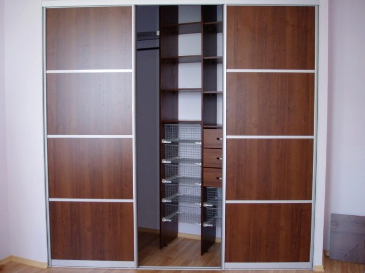 - خزانة ملابس نحيفة. تستخدم رفًا بمفصلات يفتح بزاوية 90 أو 45 درجة. يصل عرض الأرفف إلى 0.3 متر ، مما يجعلها مناسبة للاستخدام حتى في الممرات الصغيرة.