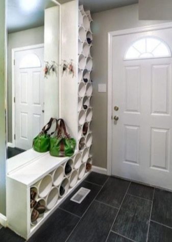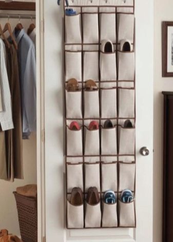 - جيوب. جهاز أصلي لوضع الأحذية الداخلية أو الصغيرة – جيوب مسطحة مثبتة على الحائط. على سطح الجدار ، لا تبرز كثيرًا ، غالبًا ما يكون لها تصميم أصلي وتستخدم كديكور غريب وغير عادي..
