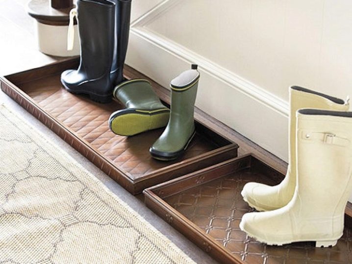 - رف الأحذية. منتج نهائي مصمم للأحذية أو الأحذية المتسخة التي يتدحرج منها الماء أو الثلج الذائب. يُباع هذا الجهاز في متجر ، لكن يمكنك القيام بذلك بنفسك. تحتاج إلى أن تأخذ أي منصات ، وملئها بالحصى أو الحصى الأخرى. يجب وضع رف الأحذية النهائي بالقرب من الباب الخارجي..