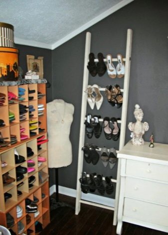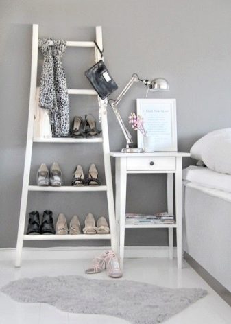 - سلم. خيار أصلي لوضع العديد من الأحذية أو الصنادل النسائية. يتشبثون بدرجات أي سلم بكعب.