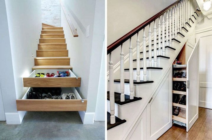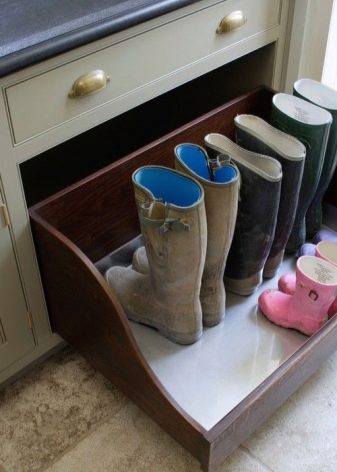 هناك طرق تخزين مختلفة: بالنسبة للكثيرين ، يكون الأمر أكثر ملاءمة عند إخفاء الأحذية عن أعين المتطفلين وإخفائها في الخزائن والأدراج ، ويعتقد بعض المصممين أن الأرفف مع الأحذية تبدو إبداعية للغاية ، ويمكنهم تزيين أي غرفة وتصبح شيئًا فنيًا.