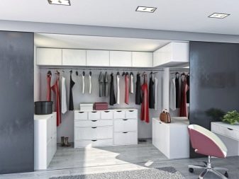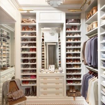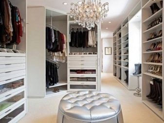 - يسمح لك ملء غرفة الملابس بتوزيع الأشياء وتزويدها بالتخزين المناسب ، بحيث لا تتجعد الفساتين أو البنطال (مثل الكرسي) ، ويوجد مكان للأحذية الشتوية حتى في الصيف.