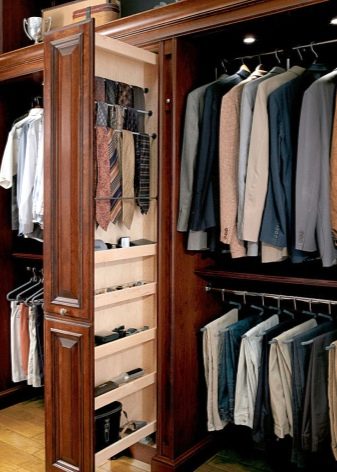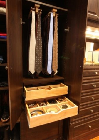 - تم تجهيز الشماعات المنفصلة للأحزمة والعلاقات وغيرها من الملحقات بفتحات خاصة ؛ يمكنك تخزين هذه الأشياء الصغيرة في الأدراج ، على أبواب الغرفة.