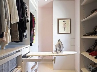 لتخفيف الشقة قليلاً ، غالبًا ما تصنع المقصورات في غرف تبديل الملابس للأجهزة المنزلية – طاولة الكي ومكواة وممسحة ومكنسة كهربائية.. بالمناسبة ، يمكن تثبيت لوح الكي على الحائط بطريقة تسهل استخدامه ، ببساطة عن طريق “فكه” من الحائط ثم تثبيته مرة أخرى بحركة يد واحدة..