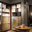 - تستخدم السلال والصناديق في حشو غرفة الملابس لتخزين الغسيل ، على سبيل المثال. يمكن وضعها على هياكل قابلة للسحب في الجزء السفلي من الغرفة لتوفير المال – فقط ضع السلال أو الصناديق على الرفوف بأنفسهم ، بعد الاتفاق مسبقًا على أحجامها.