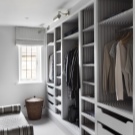 - عادة ما يتم وضع كرسي بذراعين أو وسادة صغيرة في غرف خلع الملابس الواسعة – وهذا يعطي وظيفة الغرفة (جرب الأحذية أو ارتدي الملابس) وسحر خاص.
