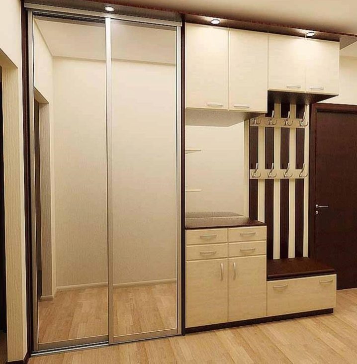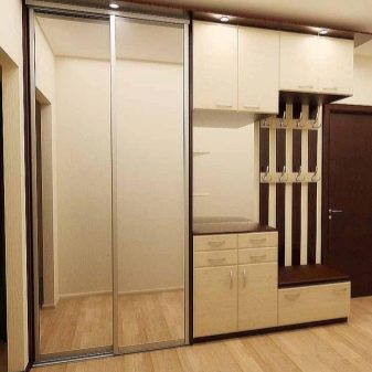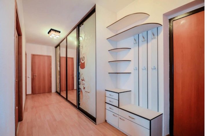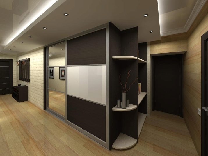 بالطبع ، يجب تخصيص مكان لغرفة تبديل الملابس. يمكن صنع خزانة ملابس مدمجة في الردهة الفسيحة. إذا قمت بلصق جدرانها بنفس ورق الحائط مثل جدران الرواق ، فستشبه بصريًا مكانة. بالمناسبة ، في بعض الشقق ، يتم إنشاء هذه المنافذ عن قصد..