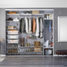 - طول الأشياء وفهم ما يجب تخزينه على الشماعات وما يجب طيه. وفقًا لعدد العناصر الطويلة (الفساتين والسراويل) والقصيرة (السترات والسترات والبلوزات والقمصان) ، يقوم المشروع بإنشاء قضبان على ارتفاعات مختلفة وأطوال متطابقة. من الأفضل إبقاء الملابس المحبوكة والجينز والأشياء الحساسة مطوية – ستحتاج إلى أرفف.