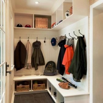 على عكس الخيارات الأخرى ، تعتبر غرفة ارتداء الملابس في الردهة مثالية أيضًا لتخزين أشياء الشوارع البحتة – القفازات والأوشحة والمظلات والمعدات الرياضية والملابس. إذا سمحت المساحة ، فمن الممكن تمامًا وضع أدوات منزلية في غرفة ارتداء الملابس هذه ، بالإضافة إلى خزنة ، وعداد كهربائي ، ولوحة تحكم إنذار ، وما إلى ذلك..