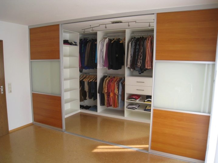 غرفة الملابس المدمجة هي نظام يتم فيه فتح جزء من المساحة ، وجزء منها – على سبيل المثال ، الرفوف العلوية أو السفلية ، مغلق من العين. يسمح لك هذا بالحفاظ على الأشياء بالترتيب ، وكذلك إزالة تلك الأشياء التي لا تستخدمها بشكل يومي..