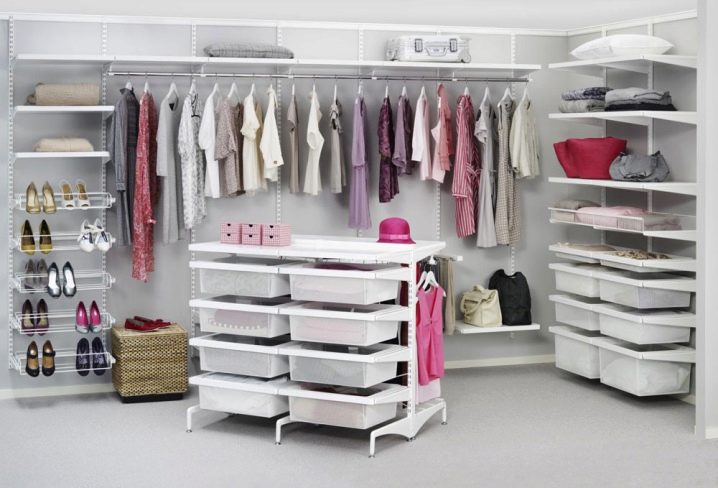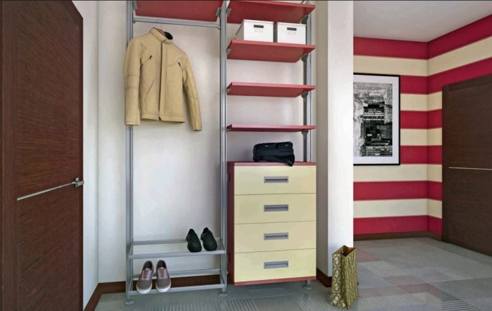 خزانة الملابس الهيكلية مبنية على رفوف معدنية. عليها ، مثل المصمم ، يتم تجميع نظام التخزين وفقًا لمشروع فردي: القضبان والسلال والقضبان والأرفف. يتم ربط هذا الهيكل بسهولة بالجدران من أنواع مختلفة ، ومن السهل تغييره (توجد ثقوب لوحدات التثبيت في الرفوف المعدنية على ارتفاعات مختلفة جدًا) ، وإذا رغبت في ذلك ، يمكن تفكيكها بشكل مستقل ونقلها إلى أي مكان آخر في منزل. لإنشاء غرفة تبديل ملابس في الردهة ، ضع في اعتبارك الاستقرار – يجب أن تتحمل الخطافات والأرفف المعدنية ملابس خارجية ثقيلة.