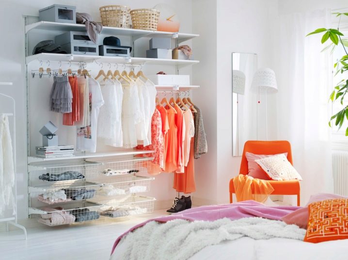 غرفة الملابس المغلقة عبارة عن خزانة ملابس كبيرة. كقاعدة عامة ، يتم إغلاقها بأبواب منزلقة مع مرآة من الخارج. مفتوحة – رفوف مع أرفف أو أنظمة تخزين مفتوحة مع سكك تعليق وسلال. تشغل غرفة الملابس هذه مساحة أقل ، ولكنها تتطلب ترتيبًا مثاليًا. كل شيء في الأفق.