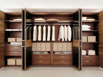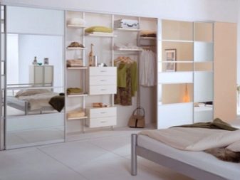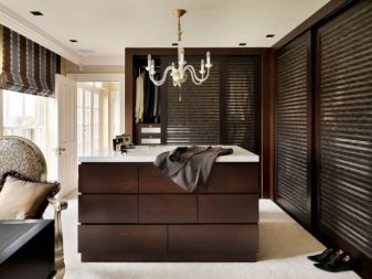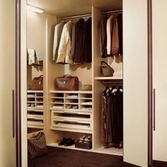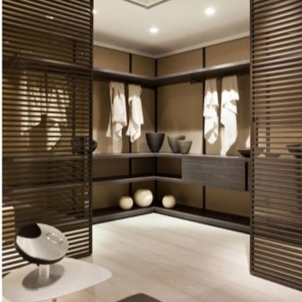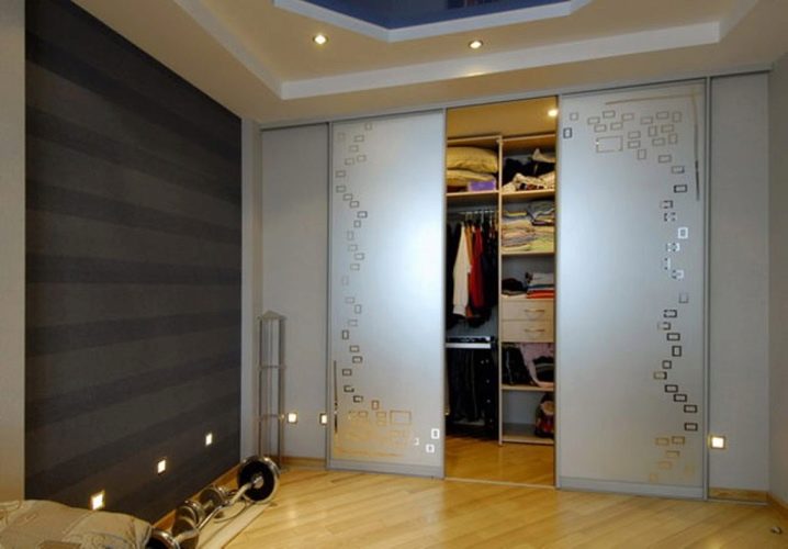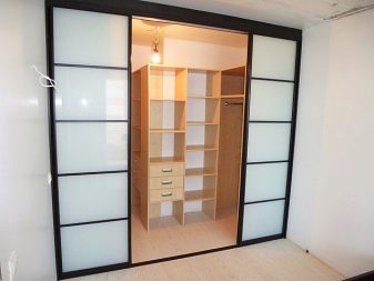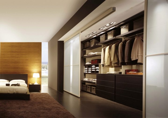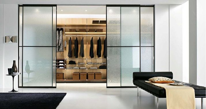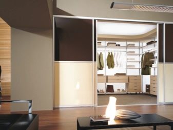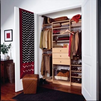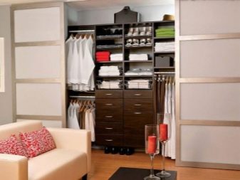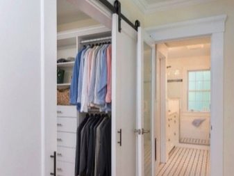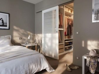 في حالة كون مساحة التخزين جزءًا من الغرفة ، يفضل استخدام قسم بسيط. ولكن إذا كانت غرفة ارتداء الملابس تشغل غرفة منفصلة ، فيجب تثبيت نظام باب موثوق عند فتحه. ثم العديد من الرفوف والشماعات بالبدلات لن تزعج الجزء الداخلي للغرفة بمظهرها ، وبإغلاق الأبواب من الداخل ، يمكنك ارتداء ملابسك دون أعين متطفلة..