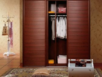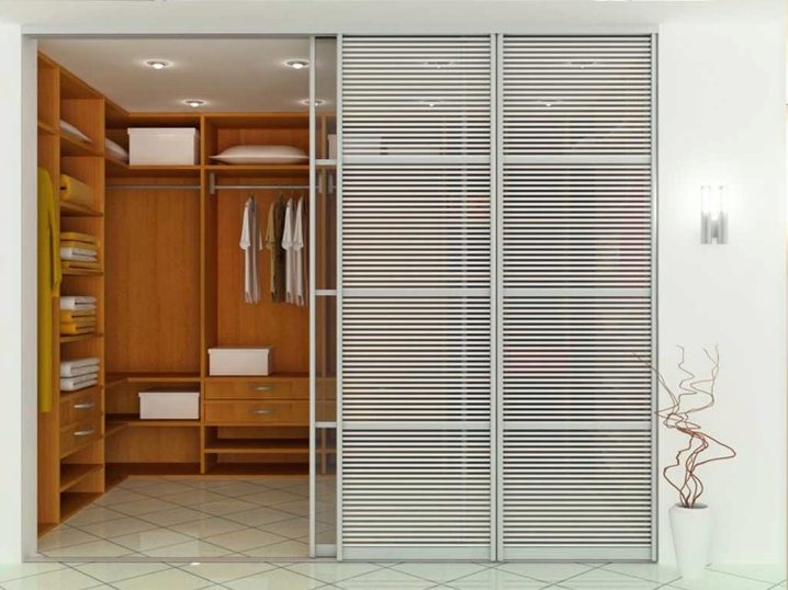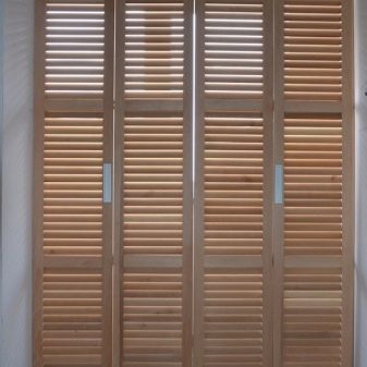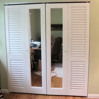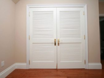 يمكن أن يكون للأبواب ذات الفتحات أو الأرفف تصميمات مختلفة: منزلقة أو متأرجحة أو قابلة للطي. تتكون لوحاتهم من العديد من الأشرطة الرفيعة المثبتة بزاوية على السطح. نتيجة لذلك ، يتم إنشاء ثقوب يخترق الهواء من خلالها. لذلك ، فهو خيار عملي لغرفة يتم فيها تخزين الملابس. يمكن أن تكون الشرائح مصنوعة من الخشب أو المعدن أو البلاستيك. كما هو الحال مع ستائر النوافذ ، يمكن تزويد هذه الأبواب بتعديل عرض الفتحات..