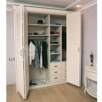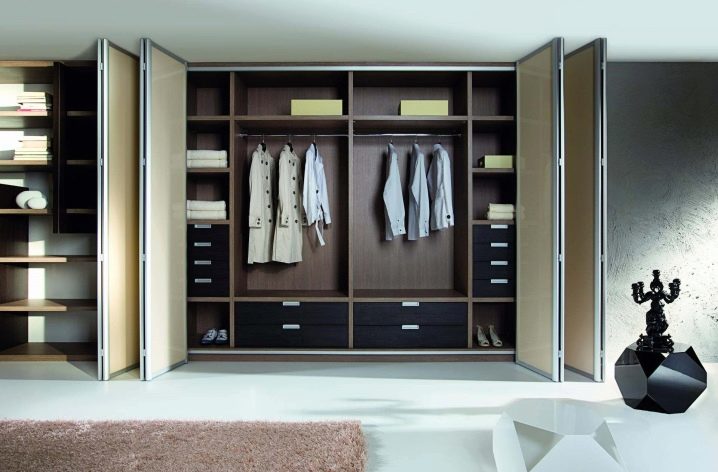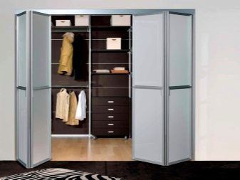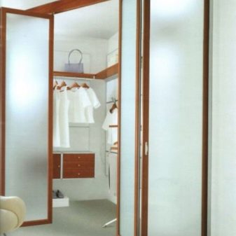 مزايا أنظمة الطي لغرف تبديل الملابس بمظهر أنيق ، سهولة الاستخدام ، عدم الاحتكاك بالأرضية. ولكن هناك أيضًا عيوب – هذا هو تخفيف حامل الباب بعد بعض الوقت من الاستخدام النشط ، والاستيلاء على مساحة العمل بشكل أكبر من الأبواب المنزلقة.
