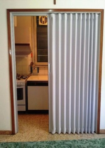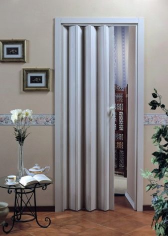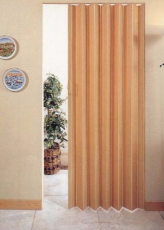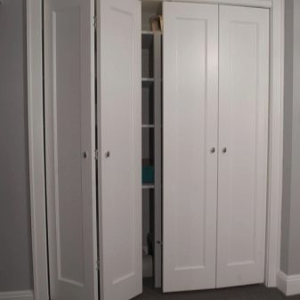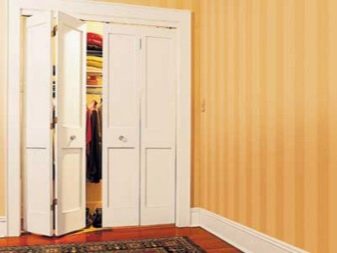 تُستخدم الأبواب القابلة للطي لغرف تبديل الملابس ، عندما يرغب أصحابها في الحفاظ على صفائح خشبية باهظة الثمن أو باركيه في حالة ممتازة ، فإن أبواب هذه الهياكل لا تلمس غطاء الأرضية. يتم تثبيت آلية السكك الحديدية مع الموجهات والبكرات على السقف أو السقف الأفقي العلوي. بدلاً من ثنايا الوشاح ، يتم تثبيت مفصلات الأبواب التقليدية.