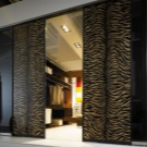 يجب دمج تصميم مدخل غرفة الملابس مع المساحة المحيطة. يتوافق نظام ألوان الأبواب مع الجدران المجاورة. يجب ألا تبدو أشكال الأقسام زائدة عن الحاجة في الداخل الحالي. لذلك ، إذا كانت الغرفة تهيمن عليها الزوايا القائمة والخطوط المستقيمة ، فلا يجب أن تكتب أبوابًا منحنية فيها. لكن العديد من المصممين ينشئون مشاريع يتم فيها توجيه أنظمة الأبواب الشعاعية مع الجانب المحدب ليس للخارج ، ولكن داخل غرفة الملابس..