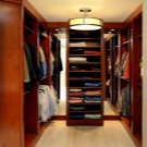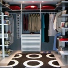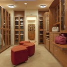 يمكن أيضًا تزيين غرفة الملابس حسب رغبتك ، على سبيل المثال ، ضع منضدة الزينة أو كرسيًا ناعمًا عاديًا في منتصف الغرفة. الخيار الشائع هو استخدام كرسي بذراعين على شكل كمثرى – وهذا سيعطي الداخل القليل من الراحة.