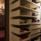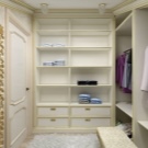 في مثل هذا الجزء الصغير من المساحة من الشقة أو الغرفة ، لن يتم وضع سوى عدد قليل من الأرفف ، حيث سيتم ، على سبيل المثال ، تخزين البلوزات والقمصان والسراويل والبيجامات. بالإضافة إلى ذلك ، تم تجهيز أرفف الكتان.