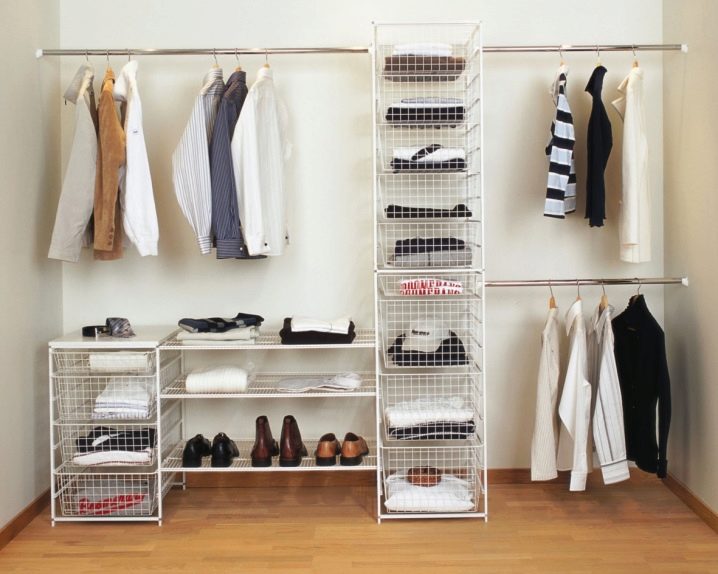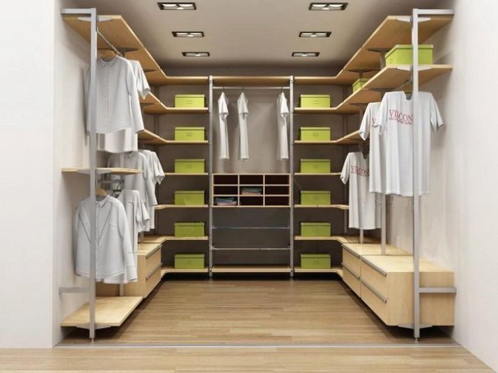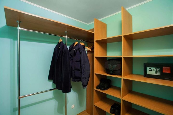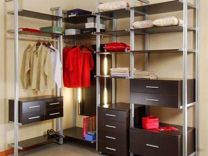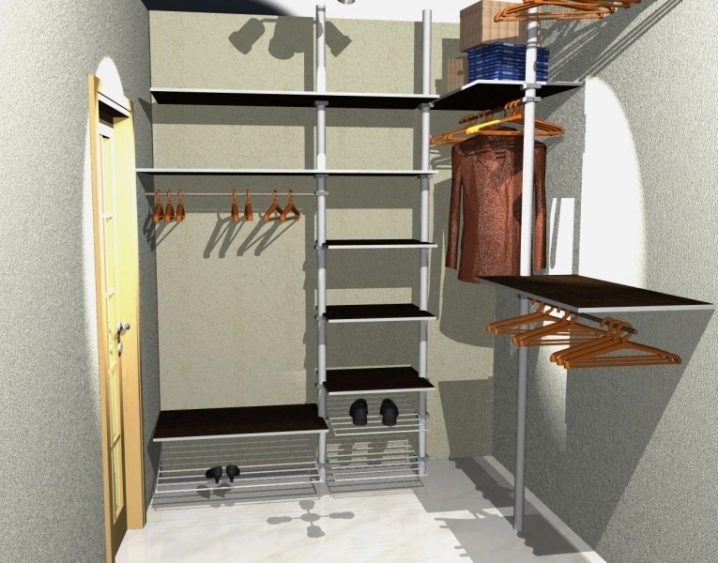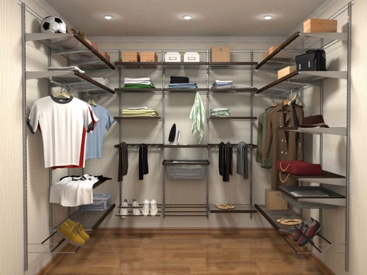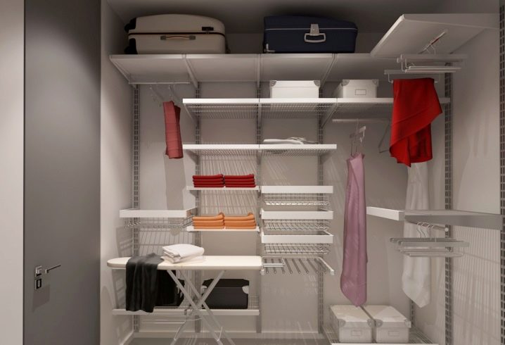 مساحة تخزين 1 متر مربع. يمكن تنظيم العداد حصريًا مع الرفوف. تقع غرفة الملابس المصغرة هذه في غرفة المعيشة وفي الممر المعتاد. السمة المميزة لمثل هذا الكائن هي سهولة التثبيت والاكتناز..