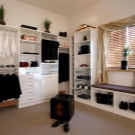 يمكنك بناء غرفة تبديل الملابس في أي غرفة في المنزل تقريبًا باستثناء المطبخ. تأكد من الانتباه إلى كيفية تناسب الرفوف مع التصميم العام للشقة..