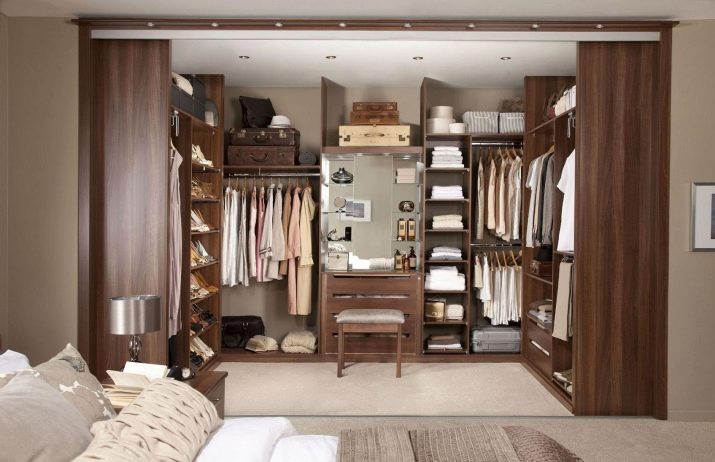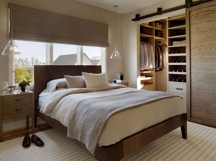 يُعتقد أن الاحتفاظ بكل الأشياء في غرفة الملابس ، الموجودة في غرفة النوم ، هو الأكثر ملاءمة. عادة ما يغير الناس ملابسهم في غرف النوم. لذلك ، إذا كانت كل الأشياء الضرورية في متناول يدك ، فهذا يسهل هذه العملية..