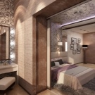 إذا كان لديك غرفة ملابس مفتوحة ، فيجب تزيينها بشكل أنيق من الداخل. ويمكنك استبدال الباب بقوس أنيق. سوف تبدو حديثة ومبتكرة..