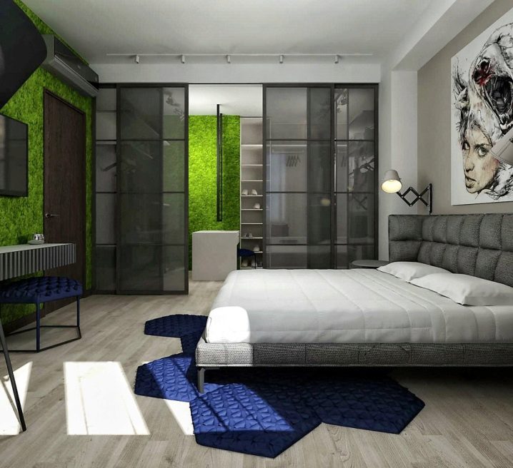 يمكنك أيضًا إخفاء الباب بصريًا بحيث يندمج مع الجدران. ثم لن يلاحظ الضيوف على الفور أن لديك مكانًا سريًا لتخزين جميع متعلقاتهم. ومع ذلك ، يمكنك ، على العكس من ذلك ، اللعب على التناقضات واختيار باب غرفة تبديل الملابس ، والذي سيختلف لونه اختلافًا جذريًا عن الترتيب الداخلي لغرفتك..