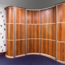 - نصف قطر الانحناء. نظرًا لنصف القطر الكبير ، يمكن أن يتخذ الأثاث شكل قوس أو دائرة. غالبًا ما يجمع المصنعون بين الأبواب المنزلقة والمتأرجحة في نفس طراز الخزانة..