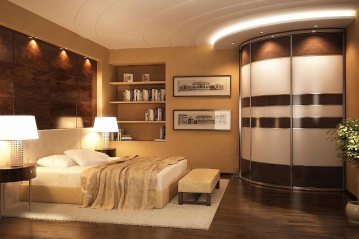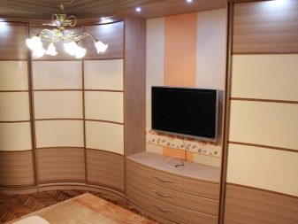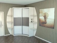 - نصف قطر الانحناء. نظرًا لنصف القطر الكبير ، يمكن أن يتخذ الأثاث شكل قوس أو دائرة. غالبًا ما يجمع المصنعون بين الأبواب المنزلقة والمتأرجحة في نفس طراز الخزانة..
