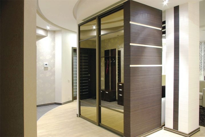 هنا سيكون من الملائم جدًا أن يكون لديك خزانة ذات قسمين منفصلين. سيحتوي أحدهما على شيء لا يتم ارتداؤه كثيرًا ، والآخر سيكون شيئًا يجب استخدامه كل يوم. من الأفضل عمل باب واحد فقط مع مرآة ، وفي هذه الحالة سوف يوسع بصريًا مساحة الرواق.