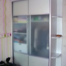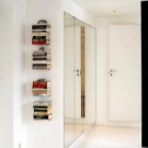 تبدو الخزانات البيضاء المنزلقة مع نافذة من الزجاج الملون على المرآة جميلة جدًا في الداخل. يبدو هذا الخيار أفضل عندما تكون جميع واجهات الخزائن مصنوعة من الزجاج. يضفي استخدام الزجاج الملون والطلاء والنوافذ المصنوعة من الزجاج الملون طابعًا حيويًا وطبيعيًا على الغرفة. تبتهج اللوحات متعددة الألوان وتجعل التصميم الداخلي أكثر تنوعًا. هذا الخيار مثالي للممر أو غرفة الأطفال..