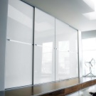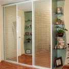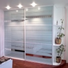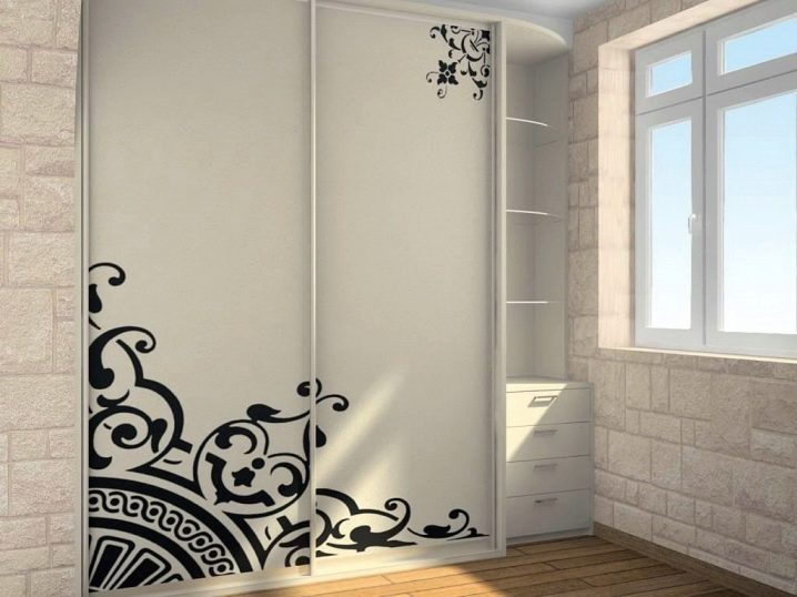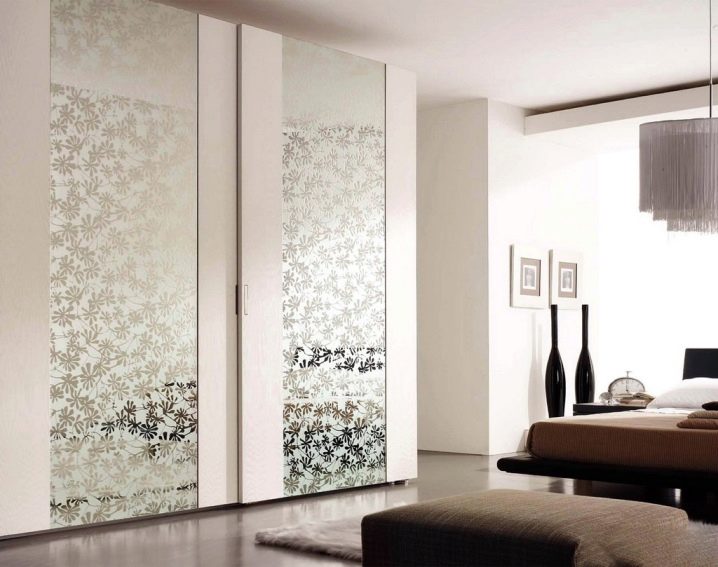 تستخدم الخزائن ذات التصميمات غير العادية على المرايا والأبواب الزجاجية في الديكورات الداخلية الحديثة. تطبيق مثل هذا النمط يسمى الرملي. أي أنها معالجة جلخ لسطح الزجاج ، عن طريق إتلاف سطحه بالرمل أو مسحوق الكشط ، والذي يتم رشه بتيار هوائي أو نفاثة قوية من الماء.