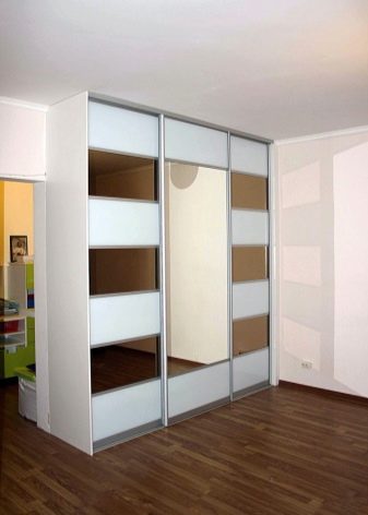 بالإضافة إلى ذلك ، بمساعدة خزانة الملابس ، يمكنك تحديد المساحة. على سبيل المثال ، افصل منطقة العمل أو غرفة المعيشة عن غرفة النوم. وأيضًا يمكن لقطعة الأثاث هذه أن تزين الغرفة تمامًا ، ولكن في هذه الحالة يجب أن تتطابق بشكل مثالي مع اللون مع جميع قطع الأثاث والإكسسوارات في هذه الغرفة..