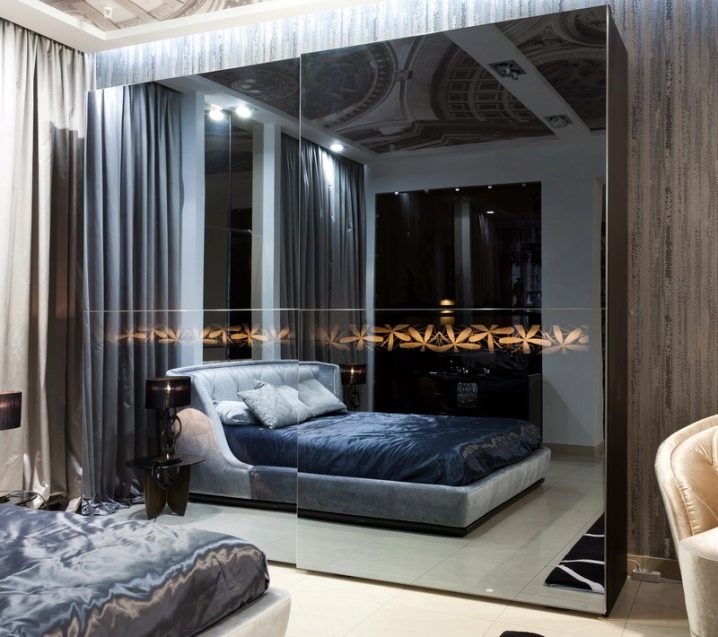 غرفة النوم مكان للراحة والاستجمام. لذلك ، يجب أن يجمع التصميم الداخلي هنا بين الجمال والراحة. خزانة ملابس مع مرآة تتواءم تمامًا مع هذه المهام..