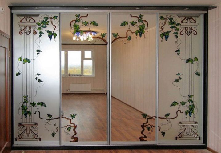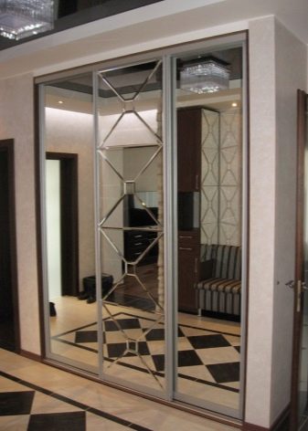 بالإضافة إلى ذلك ، في الجزء الأمامي من خزانة الملابس ، يمكن دمج جزء المرآة مع الزجاج.