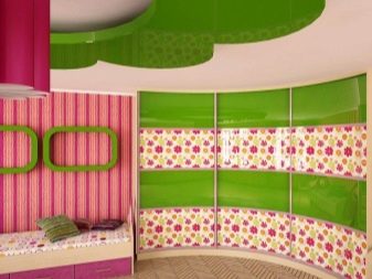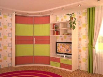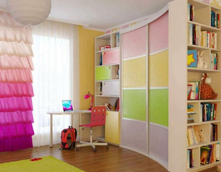 لذلك ، على سبيل المثال ، خزانة الملابس المقعرة مناسبة للحضانة. يبدو أن أبوابها مضغوطة إلى الداخل ، مع توسيع المساحة بصريًا. يمكنك تصميم النموذج بألوان قزحية. لذلك ، يمكنك استخدام اللون الأخضر والأصفر والأرجواني والمرجاني. سوف تساعد في شحن طفلك وأنت بمشاعر إيجابية ومزاج جيد. علاوة على ذلك ، سيكون هذا النموذج عمليًا للغاية. كل الأشياء الخاصة بالطفل ، والفراش ، وغيرها من الملحقات المهمة ستلائم الداخل.