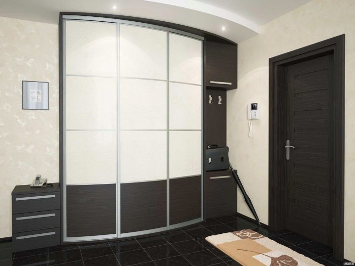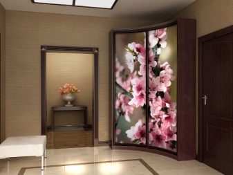 ستكمل خزانة الملابس الشعاعية المحدبة المدخل بنجاح. سيوفر مساحتك ، بينما سيتم تنظيم كل الأشياء ووضعها في مكانها. يمكنك شراء أثاث بتصميمات مثيرة للاهتمام وتشطيبات بألوان الخشب. في هذه الحالة ، يمكن أن تكون الأبواب مصنوعة من الزجاج المصنفر. ستشحنك خزانة الملابس من المدخل بمزاج إيجابي ورائع..