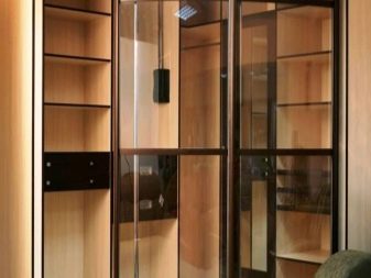 يمكن تمييز استخدام مواد مثل الزجاج والبلاستيك اللامع متعدد الألوان والخزائن ذات المرآة كتصميم مثير للاهتمام للنماذج. مثل هذه الخيارات سوف تروق لأولئك الذين لا يخشون التجربة ومواكبة العصر. سيكون من الممكن وضع خزانة الملابس هذه في غرفة المعيشة وغرفة النوم والحضانة. لا يوجد أثاث أقل جمالا يحتوي على جميع أنواع الرسومات بالليزر وتركيبات السفع الرملي.