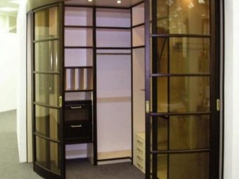 عادةً ما يقع هذا المنتج في مكان صغير ، حيث لا يمكن وضع الأثاث العادي ببساطة. على سبيل المثال ، في الردهة. خزانة الملابس هذه تبدو مثيرة للاهتمام ومبتكرة..