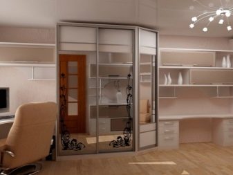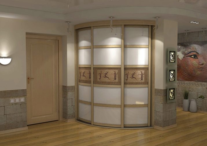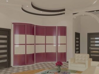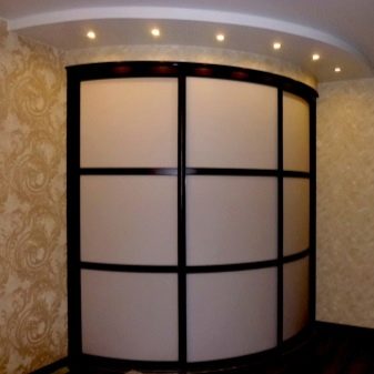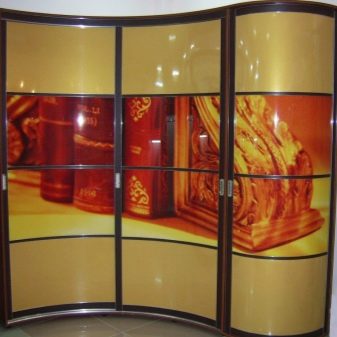من الجدير بالذكر أن خزانة الملابس نصف القطر تناسب أي من أسلوبك. أهم شيء هو ملء إطارات الهيكل بشكل عضوي بالطريقة الصحيحة. يمكن أن يتضمن التكوين مجموعة متنوعة من العناصر. يمكن أن يكون من الخشب والزجاج والبلاستيك والمواد الأخرى. يمكن أن يكون الباب الذي ينزلق بعيدًا ، على سبيل المثال ، معكوسًا بالكامل أو يحتوي على عناصر جلدية. الرسومات ثلاثية الأبعاد وطباعة الصور الملونة في الموضة الآن..