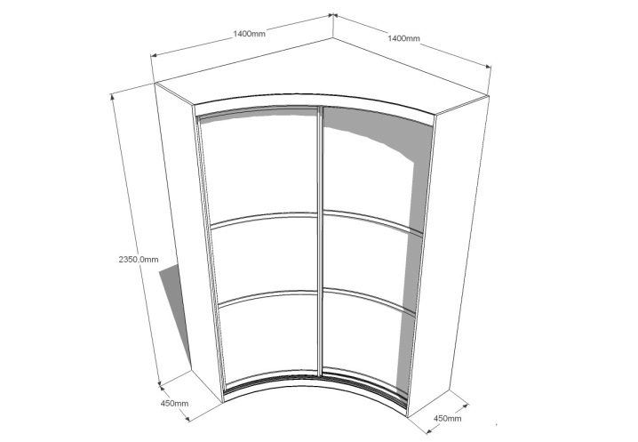 إذا لم تكن راضيًا عن أي طراز معروض في المتجر ، فيمكنك إنشاء خزانة ملابس نصف قطرها بيديك. على سبيل المثال ، لإنشاء نموذج مدمج ، يجب عليك أولاً حساب جميع الأبعاد الضرورية: ارتفاع السقف ، وعرض الجدران حيث سيتم وضع الخزانة. بعد ذلك ، نحدد نوع خزانة نصف القطر. يمكن أن يكون زاويًا ، محدبًا ، مقعرًا ، إلخ..