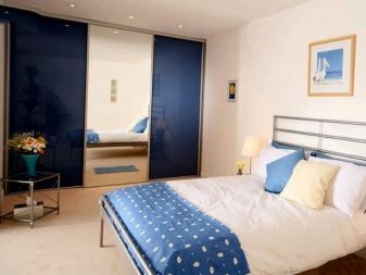 توافق على أن الزجاج الأبيض بإدخالات ذهبية يبدو ممتعًا للغاية ومكلفًا وسوف يزين أي غرفة نوم. ومع ذلك ، ضع في اعتبارك أنه في غرفة النوم من غير المرغوب فيه وضع خزانة مع مرآة مقابل السرير ، لأن المرآة يمكن أن تكون متعبة للغاية..