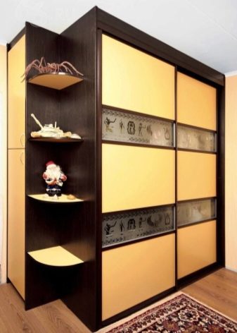 - ركن؛ هذه الخزانات المنزلقة مناسبة للغرف ذات المساحة الصغيرة عندما يكون من الضروري توفير مساحة أكبر ، على سبيل المثال ، قاعة المدخل أو الدراسة ؛