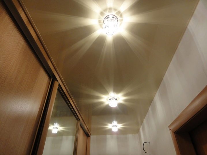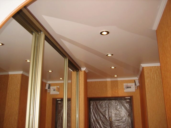 كما يتم عمل الأسلاك الكهربائية قبل تركيب السقف. بالإضافة إلى الإضاءة الرئيسية للغرفة ، سيكون من المفيد عمل صف من المصابيح أمام أبواب الخزانة. أفضل إذا كانت LED أو هالوجين.