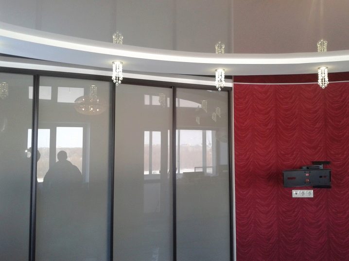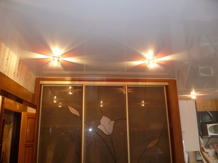 بمساعدة سقف ممتد ، يمكنك أداء وظيفة إضاءة مفيدة للغاية لخزانة الملابس. يمكن القيام بذلك حتى لو كانت الخزانة موجودة بالفعل في الغرفة. من المهم عند تصميم الأسلاك تحديد المكان المطلوب لإضاءة الخزانة ، وعمل قروض عقارية في الأجزاء المقابلة من السقف. المكان الأكثر شيوعًا للتثبيت هو حاجب الأثاث ، أو في حالة عدم وجوده ، المكان الموجود أمام أبواب الخزانة. في حالة وجود سقف ممتد في خزانة الملابس ، سيكون من المناسب تنفيذ الإضاءة داخل الأثاث. من الممكن تركيب مستشعر حركة يقوم تلقائيًا بتشغيل الضوء عند فتح أبواب الخزانة.