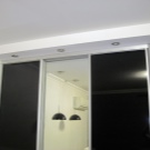- خزانة ملابس منزلقة مع سقف ممتد. في المكان الذي من المفترض أن تضع فيه أبواب خزانة الملابس ، يتم تثبيت شعاع خشبي قوي في السقف. ستعمل في نفس الوقت لتثبيت السقف المرن وقضبان خزانة الملابس المنزلقة. من المهم جدًا تثبيت الأخشاب بشكل موازٍ تمامًا للجدار – يعتمد التثبيت الصحيح للأثاث على ذلك. بعد تثبيت الأخشاب ، يتم إرفاق قضبان الخزانة به ، وسيتم بعد ذلك تثبيت الأبواب عليها.