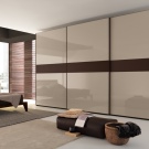 في هذا الإصدار ، يكون ارتفاع خزانة الملابس أقل بكثير من ارتفاع الغرفة. الخزانة والسقف مستقلان عن بعضهما البعض. لكن هذا لا يمنع الخزانة من ملء مساحة الغرفة بشكل عضوي..